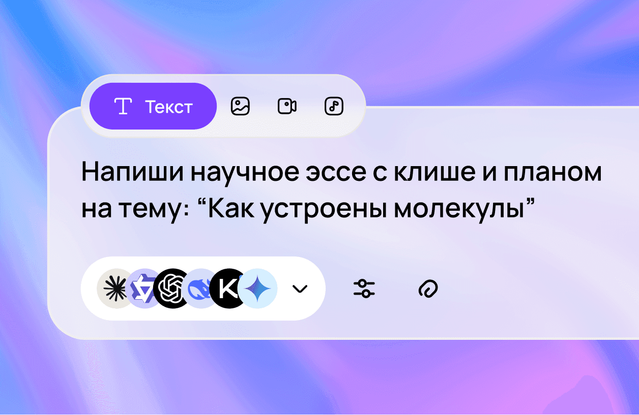 В Молекуле доступны все топовые текстовые и фото модели. Для текстов можно использовать ChatGPT 5 и 5.1. А также все версии Claude, Grok, DeepSeek, Perplexity, Llama, Qwen и Gemini.